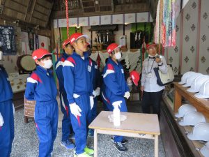 「ホースの先ってすごく重い。」「座席が高くて怖かった。」「服が暑い。」と,子供たちの声が聞こえてきました。貴重な体験をすることができたようです。「一つの命を守るために・・・」というキーワードを何度も使って,職員の方々が,どんな思いで働いているのかを丁寧に説明してくれました。